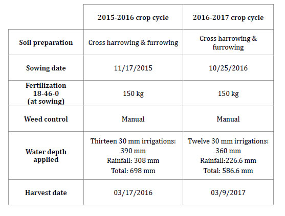 Table 1. Cultural management of the experimental plots- 2015-2016 and 2016-2017 crop cycles.