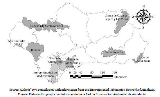 Figure 1. Geographical distribution of Andalusian Biosphere Reserves.