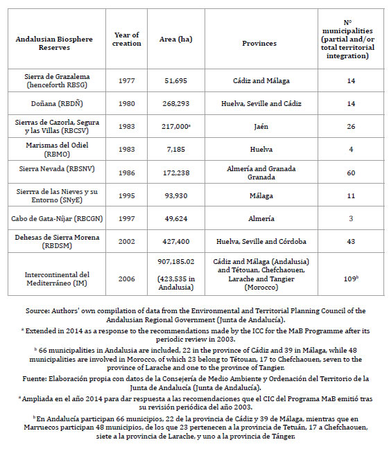Analysis of the implementation of the "Man and the Biosphere" programme in the biosphere reserves of Andalusia