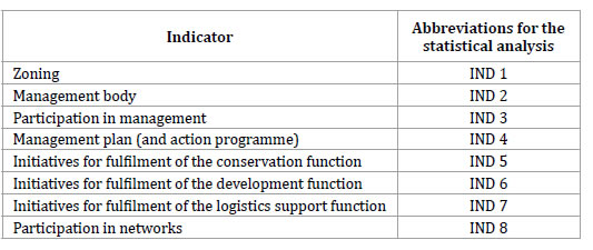 The indicators that recorded improved results in the second phase were: Indicator 2, "Management body", Indicator 4, "Management plan and action programme", Indicator 5, "Initiatives for fulfilment of the conservation function", Indicator 6, "Initiatives for fulfilment of the development function" and Indicator 8, "Participation in networks".