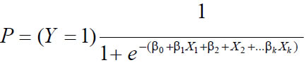A stepwise backward regression method was used for the likelihood ratio as it gives rise to different models for predictive purposes highlighting the most parsimonious ones. It involves starting with all the selected independent variables and eliminating those lacking statistical significance (1). To measure the goodness of fit, the percentage of correct estimates in the model was used, as it facilitates the comparison between the predicted values and the observed values. The cut-off point of probability Y to classify the individual variables was 0.5. The equation used to calculate the probabilities was as follows: