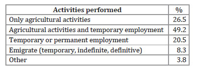 To a large extent, heads of families contribute to the family income by combining agricultural activities with temporary employment, or by exclusively securing employed outside the PPU (table 3, page 255).