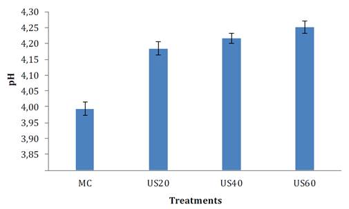 Figure 1. Soursop pulp pH treated and untreated with thermosonication at different temperatures.