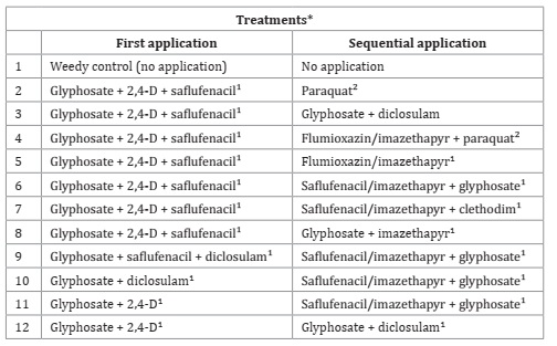 worldwide, in soybean pre-sowing burndown. The study was conducted under field