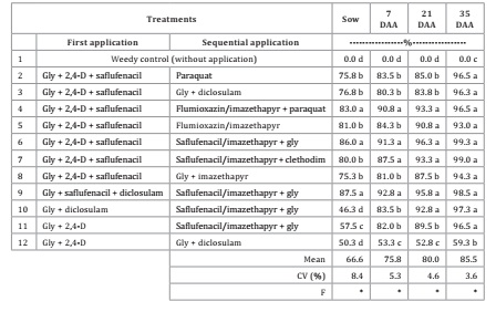 saflufenacil en cualquiera de las dos aplicaciones. Estos resultados resaltan