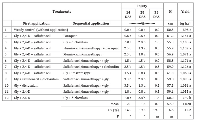 studied treatments were selective to soybean, which showed higher injury values