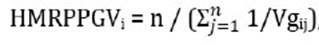 Aiming to verify fiber and apparent sucrose content productivity and genotypic stability through harvest cycles, the harmonic means of relative performances of predicted genotypic values (HMRPPGV), were provided by: