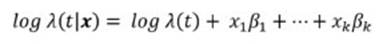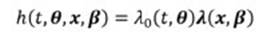 A widely used specification in survival regression allows the hazard function λ0(t, θ) = λ0(t) to be multiplied by λ0(x, β) = exp (x' β).