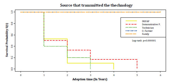 Figura 4: Curva de supervivencia de Kaplan-Meier por fuente de información sobre la tecnología.