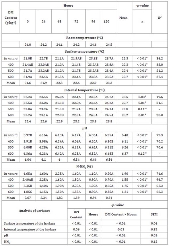 0,01) de MS en el henolaje con 581,6 ± 15,4 g/kg, y el mayor (p <