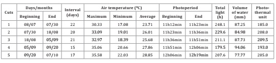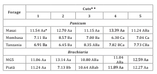 five cuts were calculated. Irrigated forage during winter in the Goiás’ Cerrado