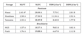 literatura. Mombaça se destacó entre el Panicum y MG fue superior al piatã.
