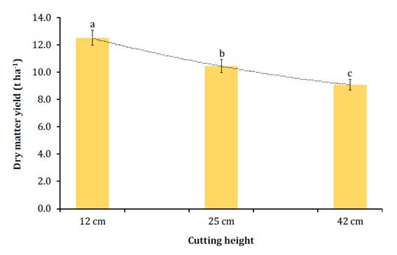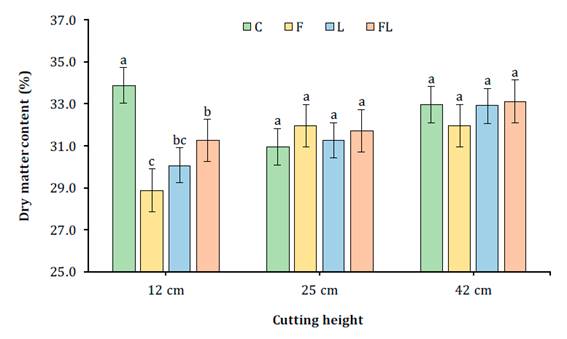 was harvested at three different cutting heights (12, 25 or 42 cm above the
