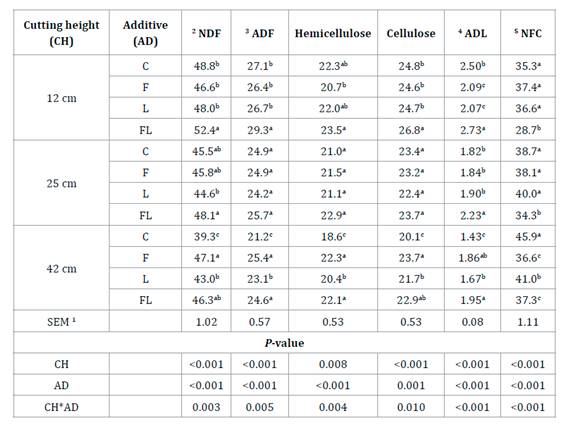 in F12 (P<0.05) silages. As cutting height was higher, cell wall