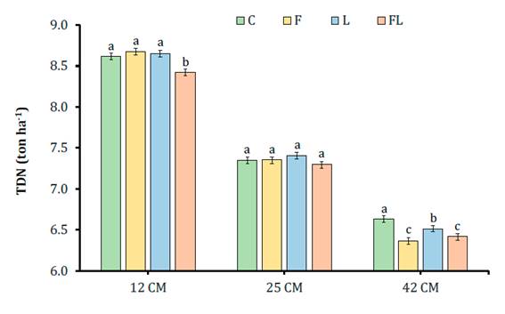 fibrolítica (F), o una mezcla de ambos (FL). El maíz fue cosechado a tres