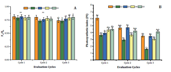 se observaron valores de Fv/Fm superiores a 0,75. En el séptimo mes, los