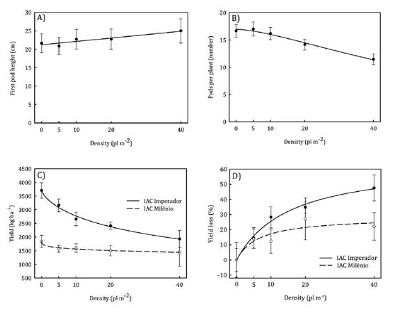 herbicide doses). Each soybean plant per m2 reduced bean crop yield