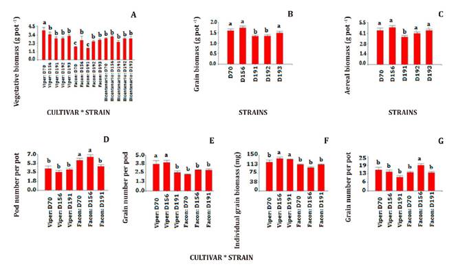 per plant, aerial biomass and grain yields. D70 provided good nodulation, N