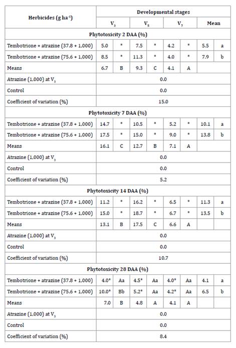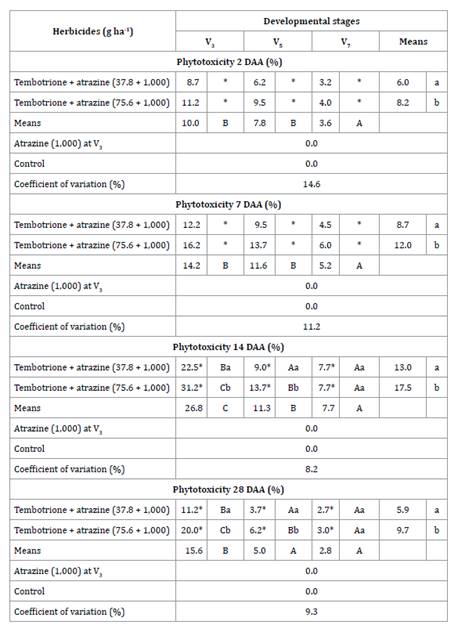 atrazine at different doses and developmental stages of grain sorghum. Two