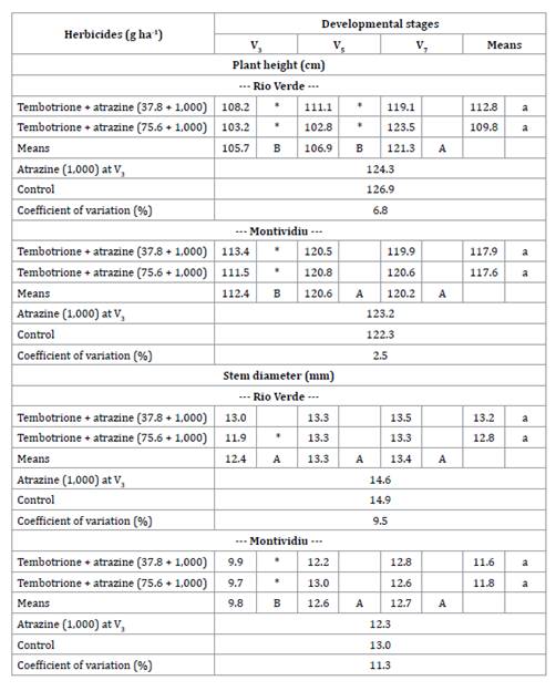 treatment only with atrazine at V3 and a control, free of herbicide.