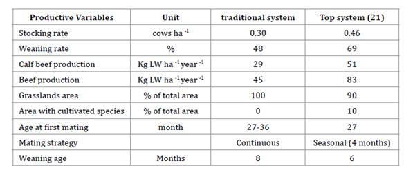 were: i) to characterize the productive state of traditional cow-calf systems, named