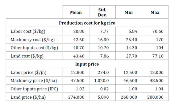 arroz, tenencia de la tierra, modelo estocástico, ineficiencia de costos, mala