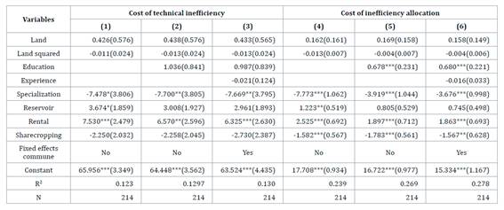 sample of rice farmers in Ñuble Region, Chile. A stochastic frontier model was estimated