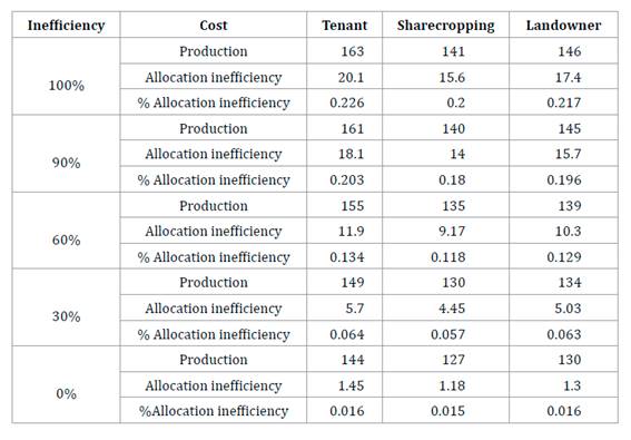 misallocation, accounting for 93% of allocative inefficiency costs. Sharecropping
