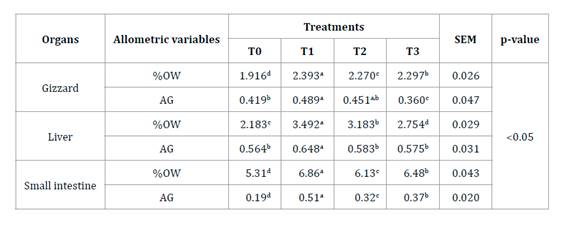 incidencia en el desarrollo de los parámetros zootécnicos, alométricos y de la