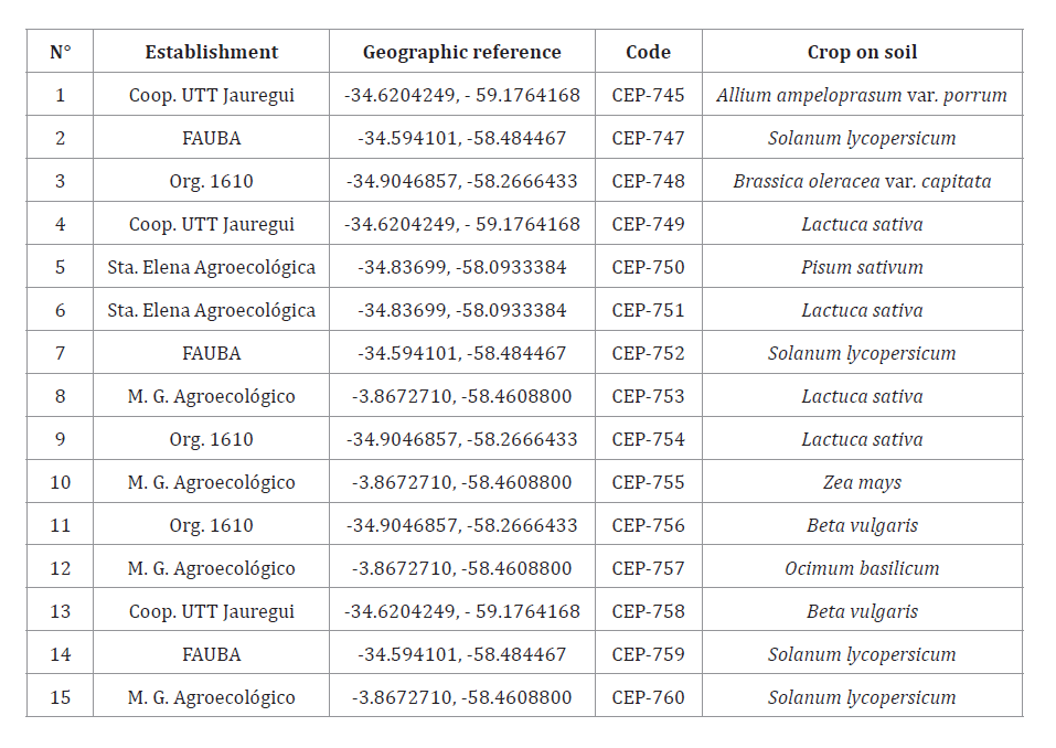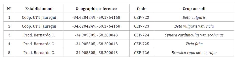 Argentina, de los cuales se obtuvo un total de 41 muestras de suelo. Se