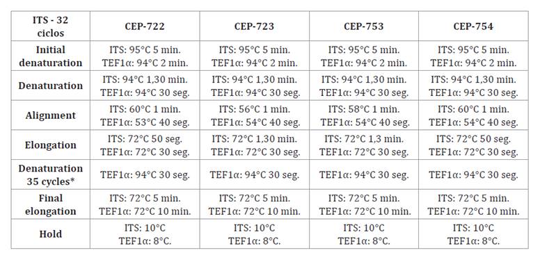 por medio de la amplificación de las zonas ITS y TEF1α, presentaron los mejores
