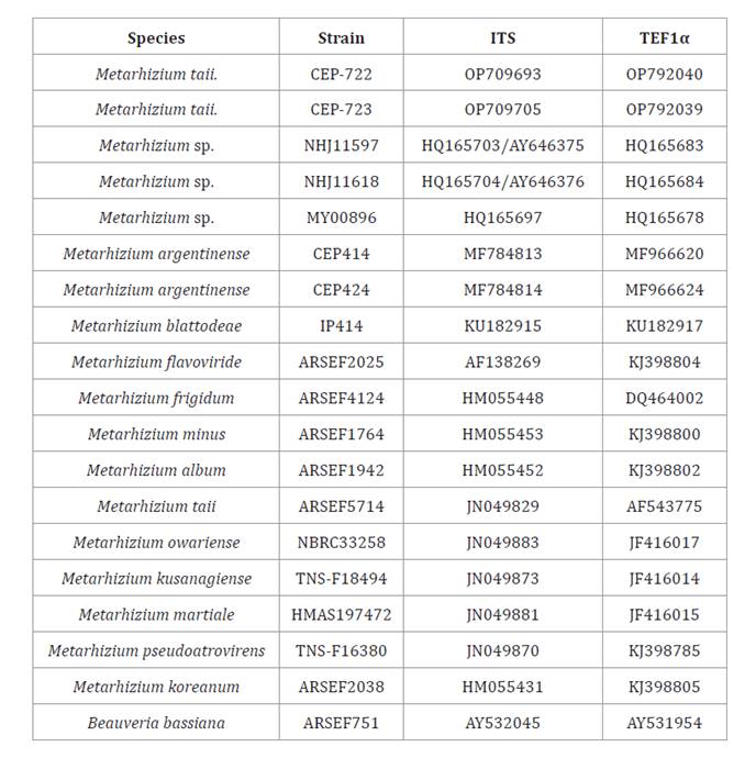 isolates of Metarhizium taii Liang & Liu (1991) CEP-722, CEP-723 Trichoderma