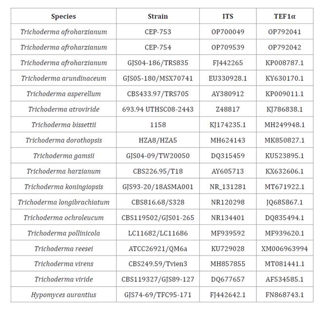 and CEP-754, molecularly identified by amplification of the ITS and TEF1α