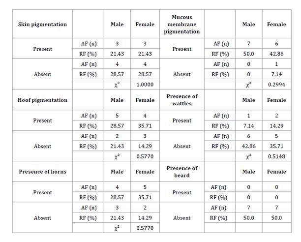 independientes y Chi cuadrada. La estructura morfoestructural de los cabritos
