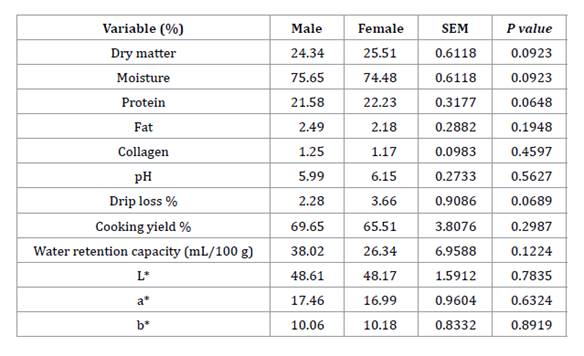 en machos que en hembras (P≤0,05). Las características fisicoquímicas y valor
