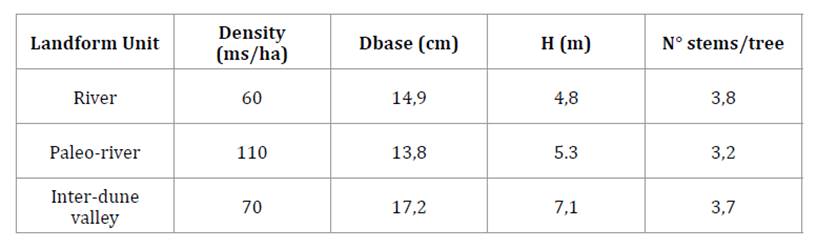 multi-stemmed trees, which are exploited by local inhabitants to obtain forest