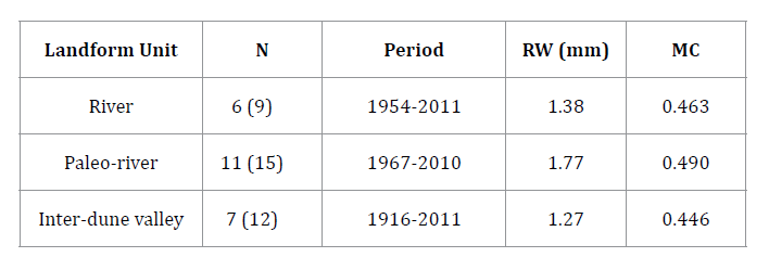 using dendrochronological methods. Results indicated that landform heterogeneity