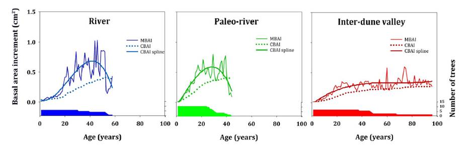 period. In this sense, a decreasing trend in tree productivity emerged along a