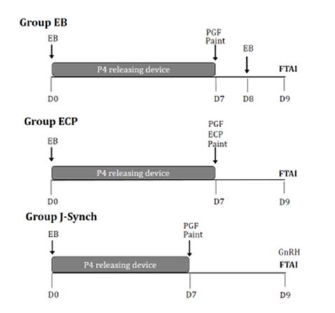 EB group received 500 μg cloprostenol (PGF2α), and P4 devices were removed on