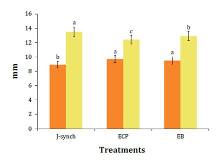 del folículo dominante y del CL fueron mayores (P<0,05) en las vacas del