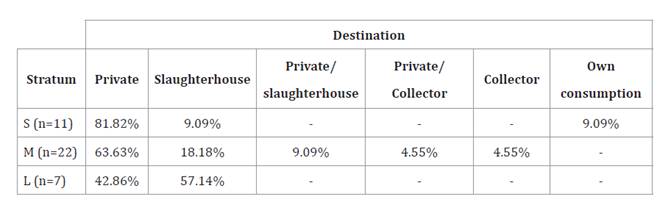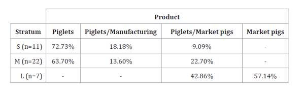 and Large (100%) strata. Regarding commercialization, data indicated piglet