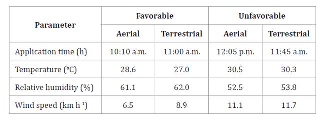 viento. La aspersión aérea se realizó mediante una aeronave Cessna, mientras