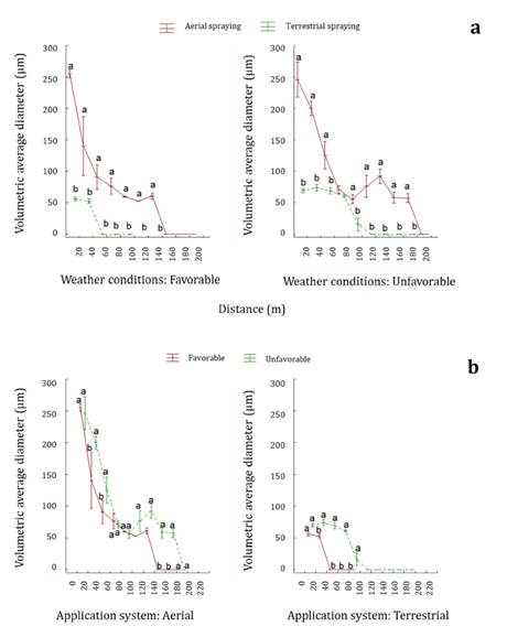pulverización terrestre produce gotas más grandes, su distancia más corta al objetivo
