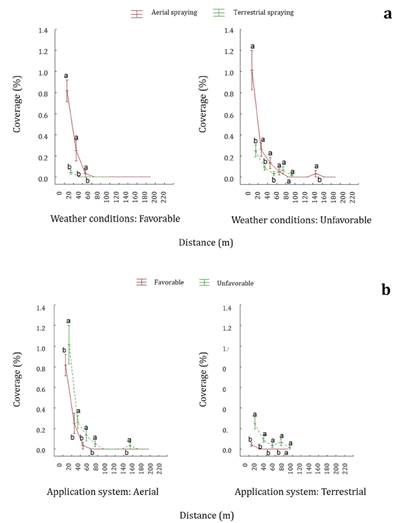 potencial de deriva. La densidad de gotas y la cobertura del área no objetivo