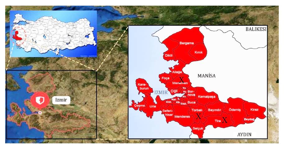 Considering crop pattern and level of production intensity, in 2016 we selected Menemen (38°36’ N 27°04’ E), Torbali (38°9’ N 27°21’ E), and Tire (38°5’ N 27°44’ E), districts of Izmir province (figure 1).