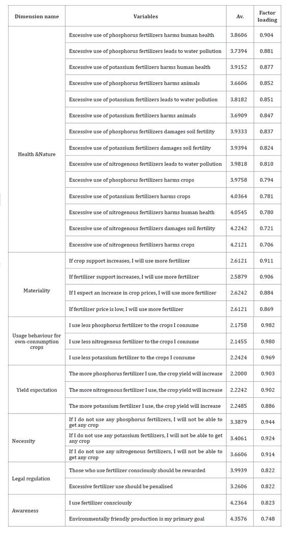 Table 3. Factor dimensions determining farmers’ attitudes towards fertilizer use.