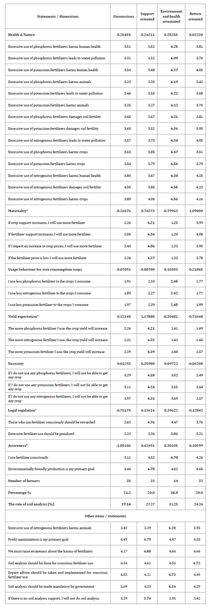 Table 4. Farmers’ groups according to fertilizer use and behaviour dimensions.