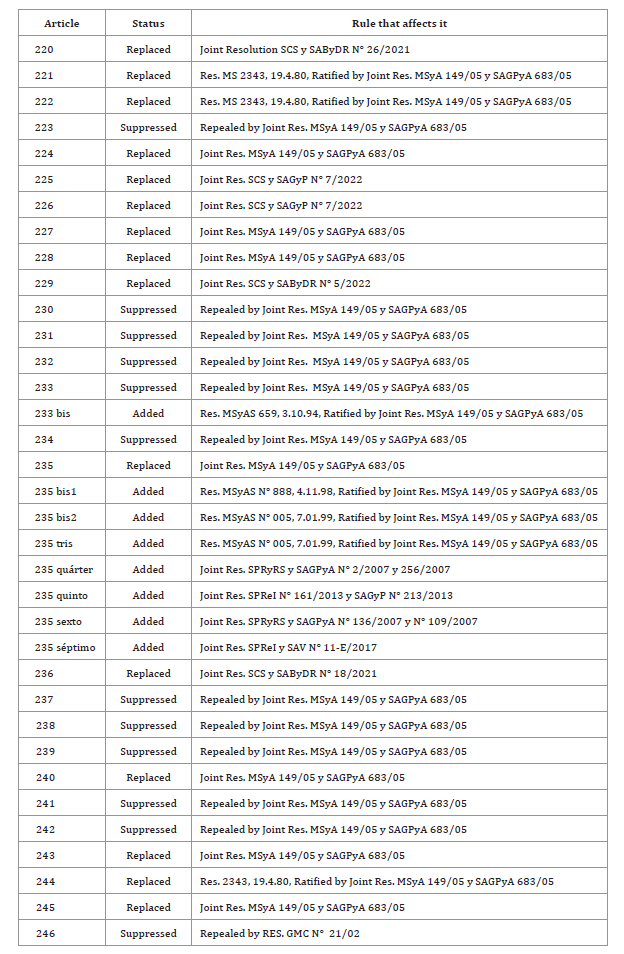 sanctioned date, the Argentine Food Code has been subject to multiple and