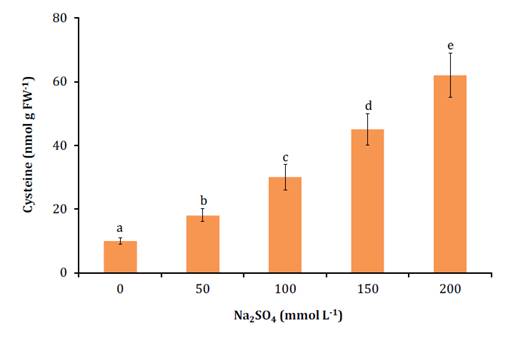 Figure 2. Cysteine concentration in leaves of N. ruscifolia seedlings grown in increasing concentrations of Na2SO4.