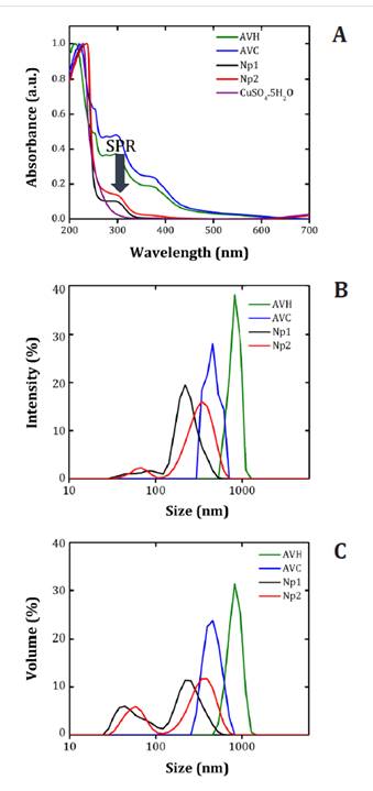 UV-vis y dispersión dinámica de luz (DLS). Las Nps sintetizadas con Aloe
